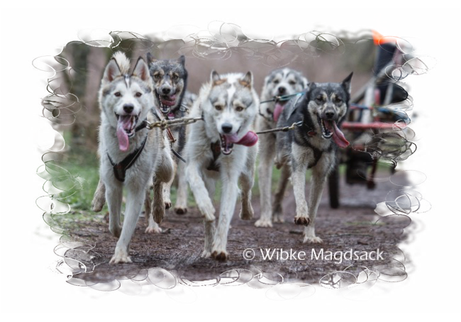 Von November bis März bieten wir Ihnen das Mitfahren auf dem Schlitten/Trainingswagen oder das Wandern mit unseren Siberian Huskies an.
